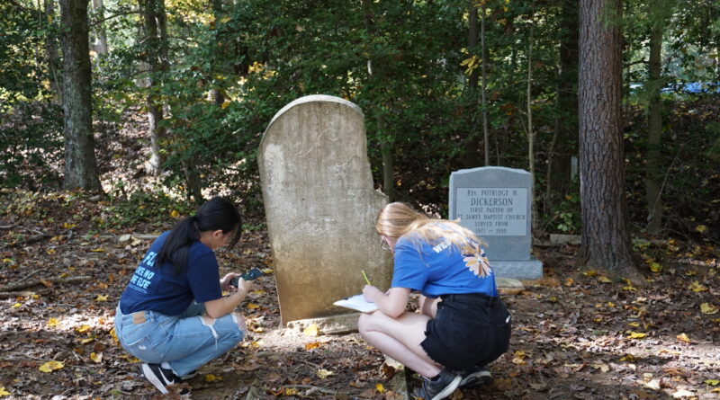 In Fall 2023, the collaborative class project for ARCH 310 (Archaeology of Death) was focused on Saint James Cemetery in Varina, Henrico County. With the help of UR’s GIS Operations Manager (Beth Zizzamia) and other members of the Richmond Cemetery Collaboratory, we mapped all visible markers and unmarked burial depressions, conducted archival research to find documents for other persons who were buried at the cemetery for whom no markers exist today, created a detailed catalog of handmade concrete headstones, and scanned some headstones to create 3D models. Work in progress was shared with community members in December at the Varina branch of Henrico County Public Library. The full report is available here: Saint James Cemetery Report 2024.