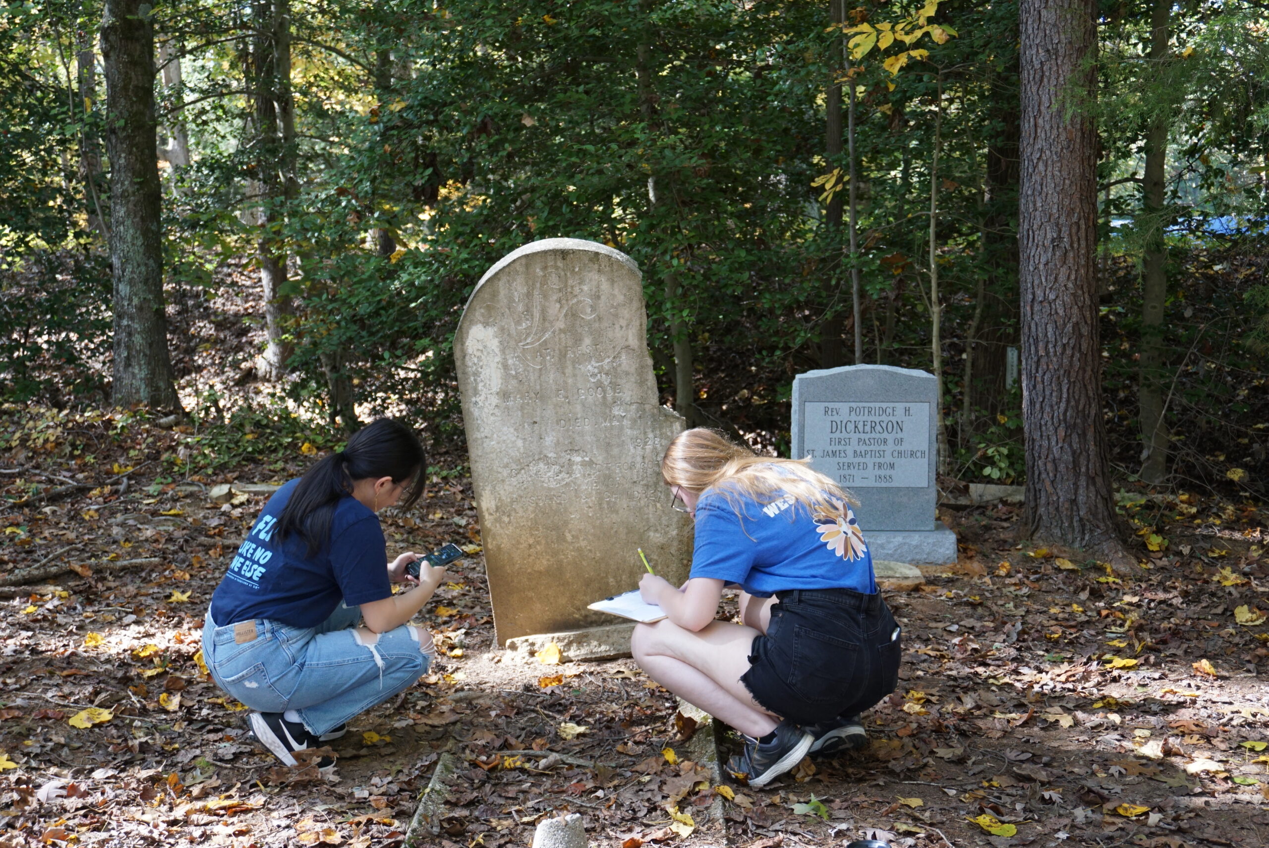 In Fall 2023, the collaborative class project for ARCH 310 (Archaeology of Death) was focused on Saint James Cemetery in Varina, Henrico County. With the help of UR’s GIS Operations Manager (Beth Zizzamia) and other members of the Richmond Cemetery Collaboratory, we mapped all visible markers and unmarked burial depressions, conducted archival research to find documents for other persons who were buried at the cemetery for whom no markers exist today, created a detailed catalog of handmade concrete headstones, and scanned some headstones to create 3D models. Work in progress was shared with community members in December at the Varina branch of Henrico County Public Library. The full report is available here: Saint James Cemetery Report 2024.