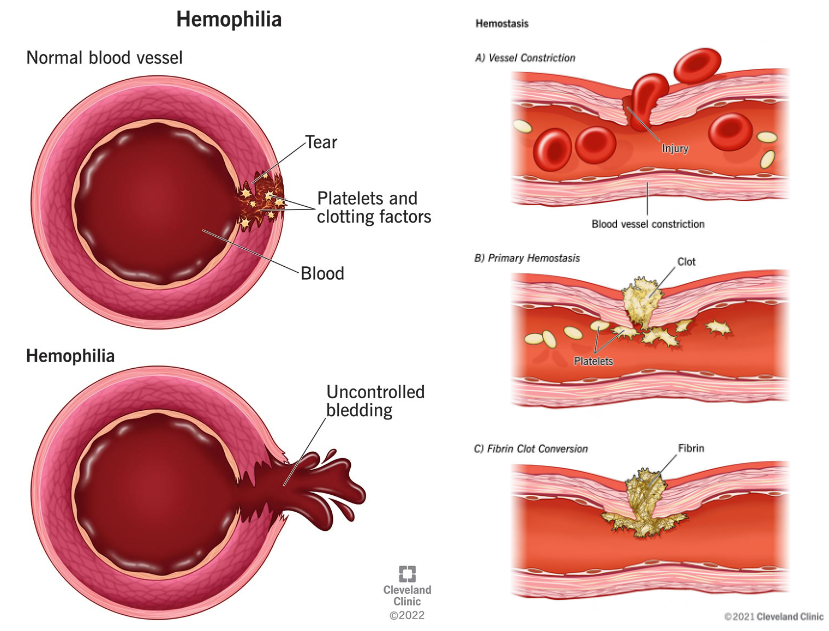 2. “Hemophilia.” Cleveland Clinic. Available online at https://my.clevelandclinic.org/health/diseases/14083-hemophilia.