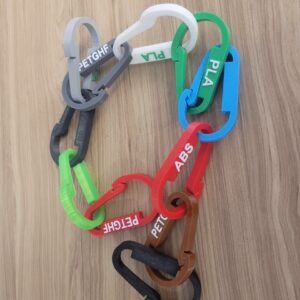 - This chain of carabiners provides a sample of every filament used on the X1C printer.