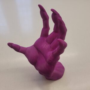 - Fun test print for Halloween decoration using 10 year-old donated filament. At 10 inches, it tests the maximum build volume for the printer.