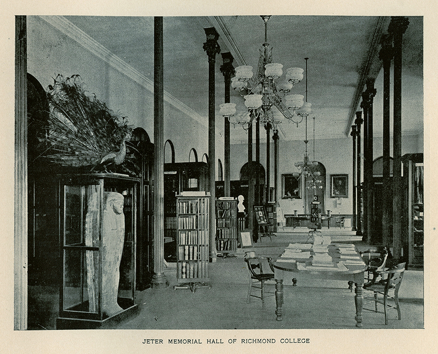 The museum of Richmond College began in the 1870s with a single case of “rocks, fossils, dried plants, and curios.” According to an 1876 letter from J.L.M. Curry just after he had acquired the mummified remains and coffin of Ti-Ameny-Net for the museum, the goal was to build “a collection, which, while education in its influences on the students, may be valuable to the city and state.” Curry and other professors and trustees made donations “with the hope that the friends of the College and others interested in having a Museum in our capital may be stimulated to collect and present other objects of historical, ethnological, societelogical, and geological value.”