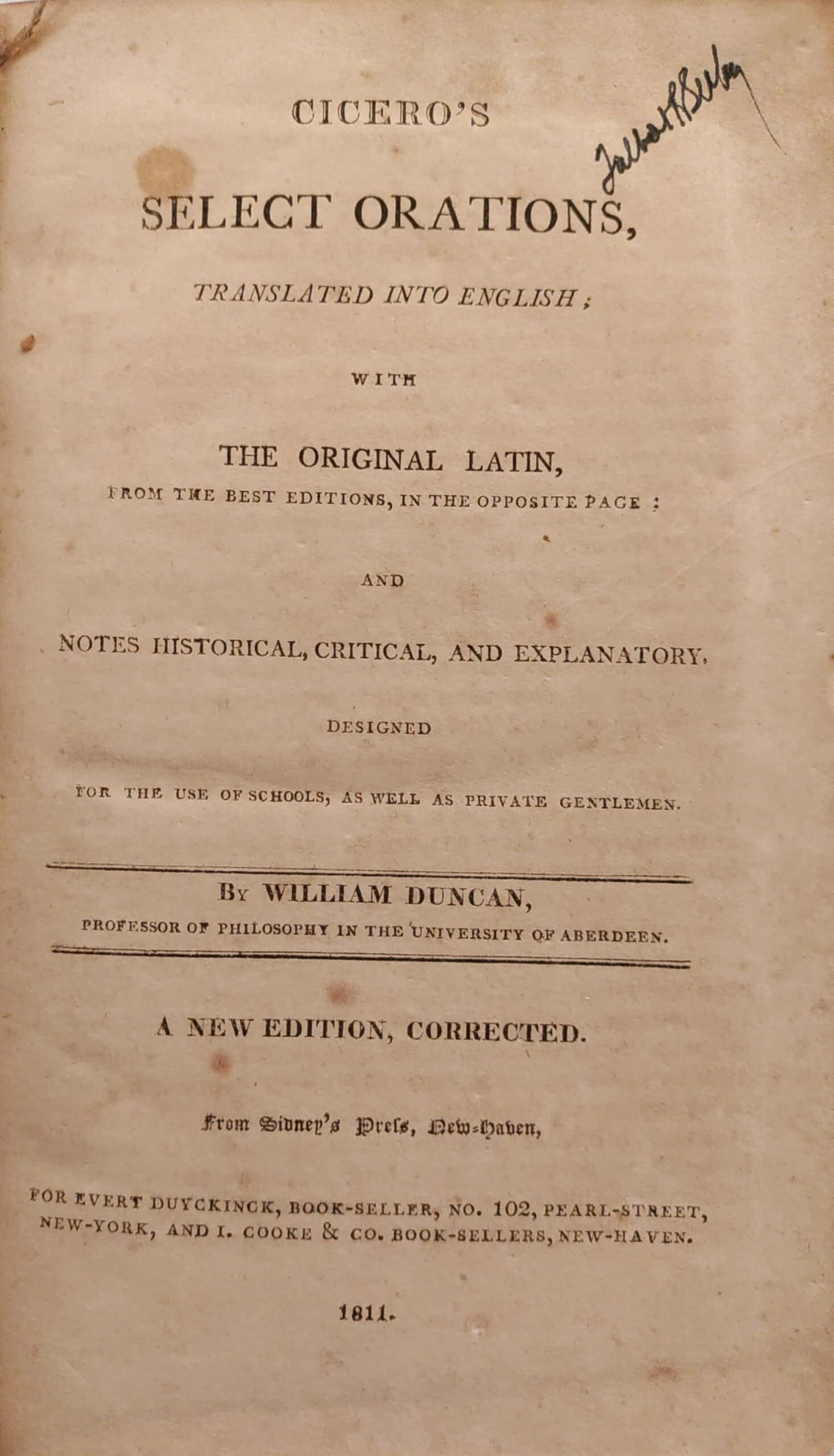 This book, Cicero’s Select Orations, was originally published in 1756, only four years before Duncan’s death. He would die at only 43 years old, with a continuation project of Thomas Blackwell's Memoirs of the Court of Augustus left unfinished.
