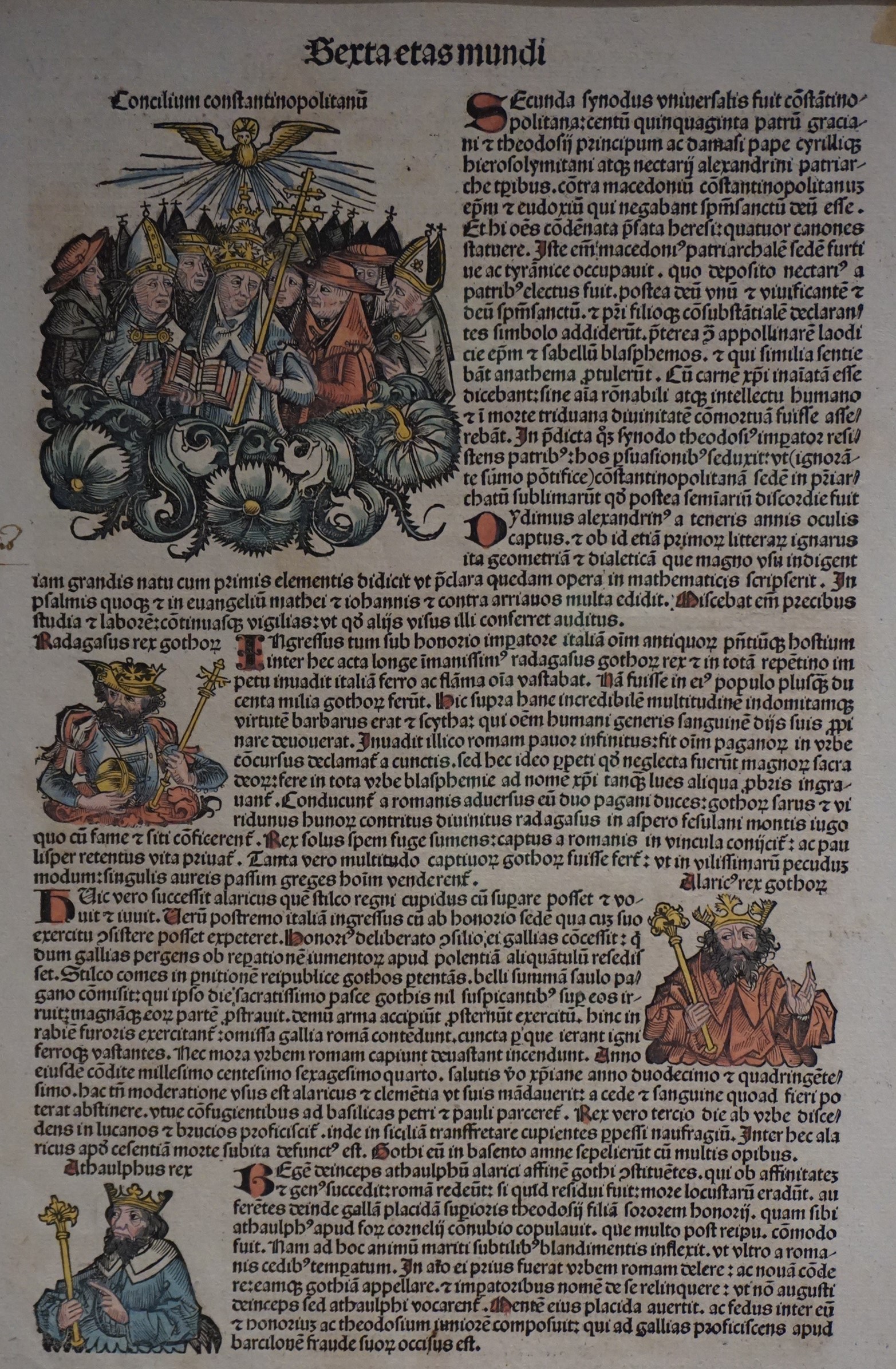 For a general page, see St. Louis Art Museum 86:2012. For a large picture, see British Museum 1870,1008.1938.1-136. For a detailed description of this page in particular, see Beloit College Nuremberg Chronicle. The entire text is also available in the public domain.
