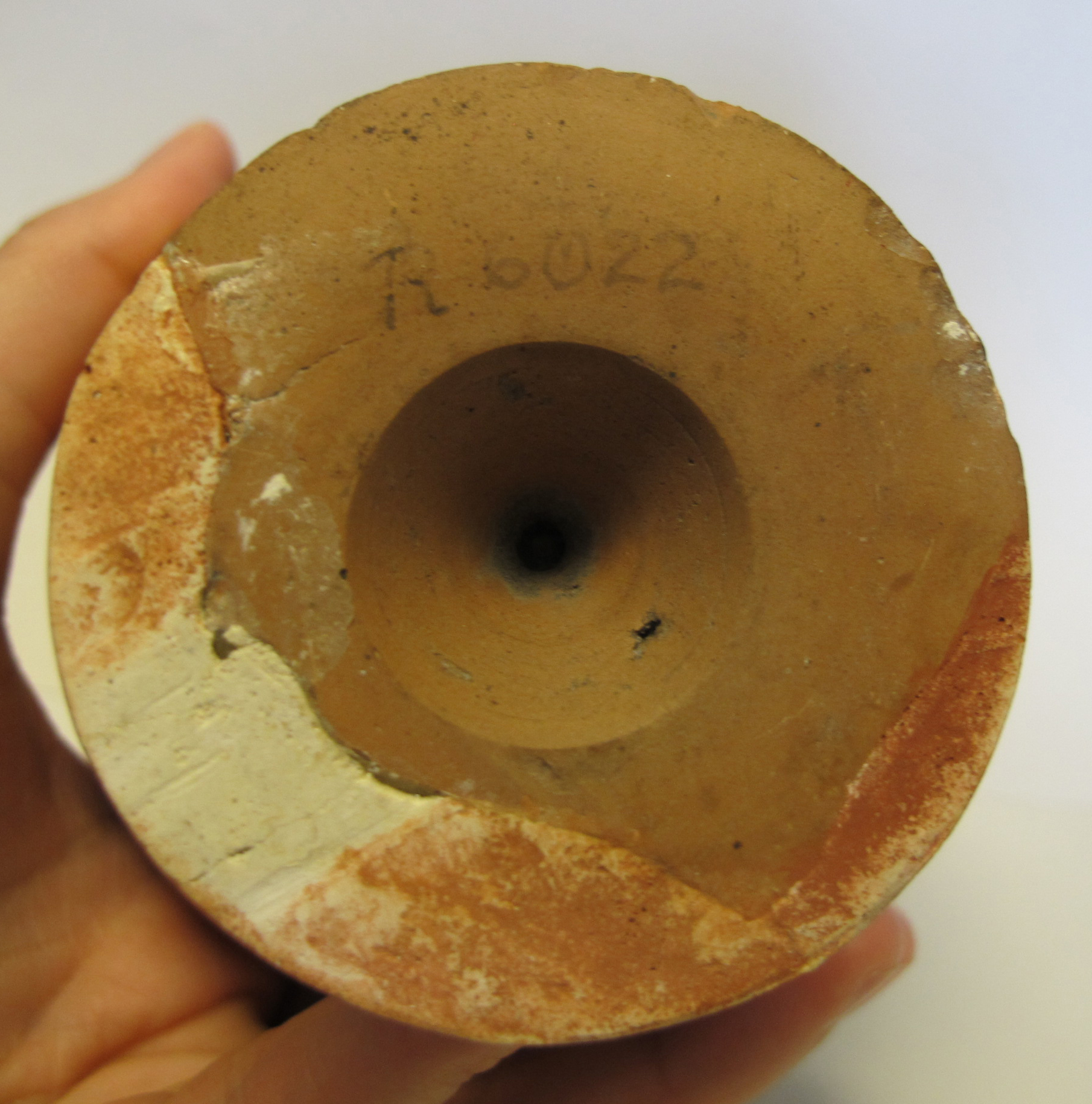 Date of acquisition: Prior to 1939. The inventory number beginning with R suggests that it was part of the Richmond College Museum collection. Other R-numbered items were displayed in the Biology Museum in Maryland Hall beginning in 1932, and this vase appears in a photo of that museum published in 1939.