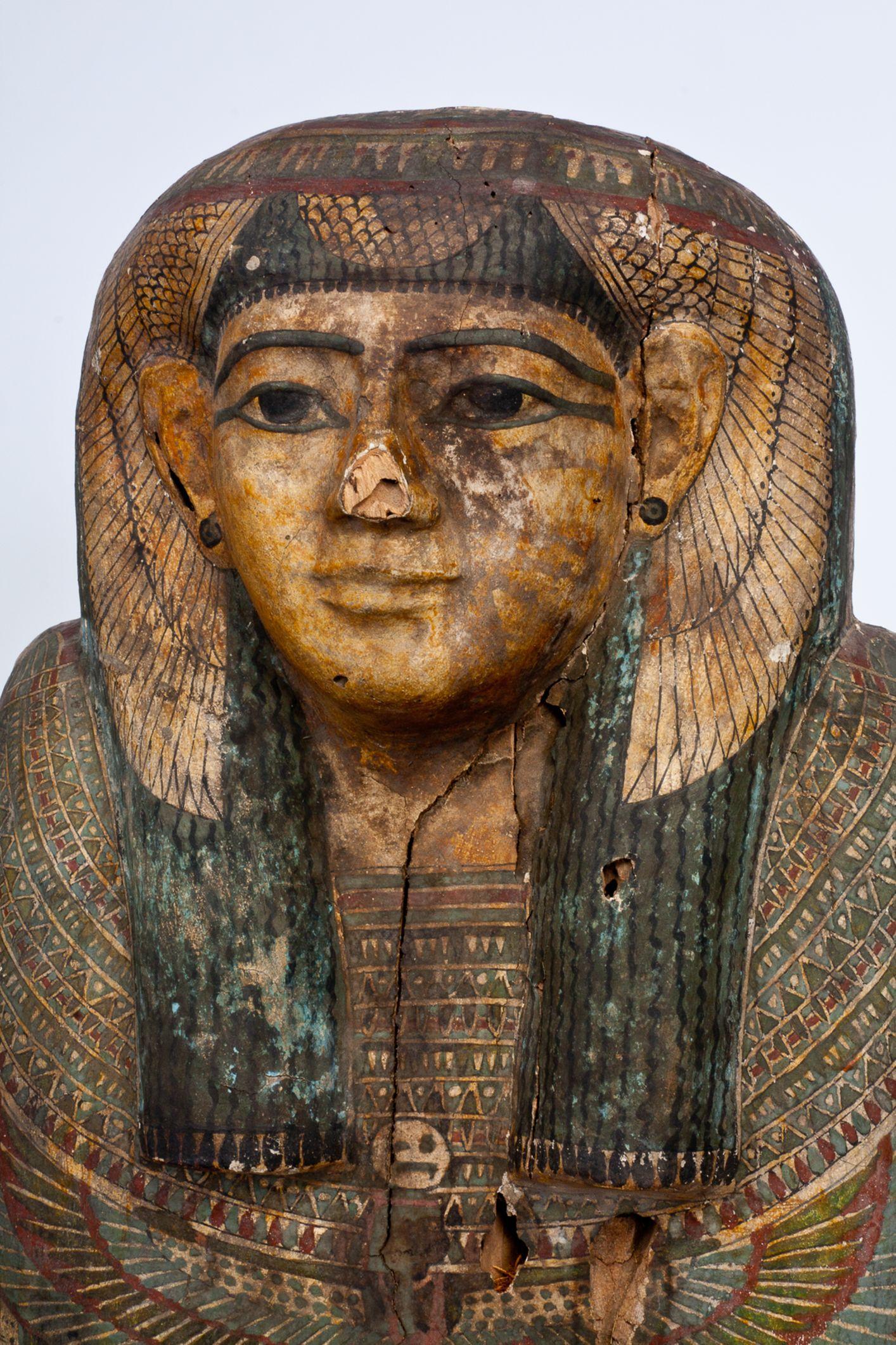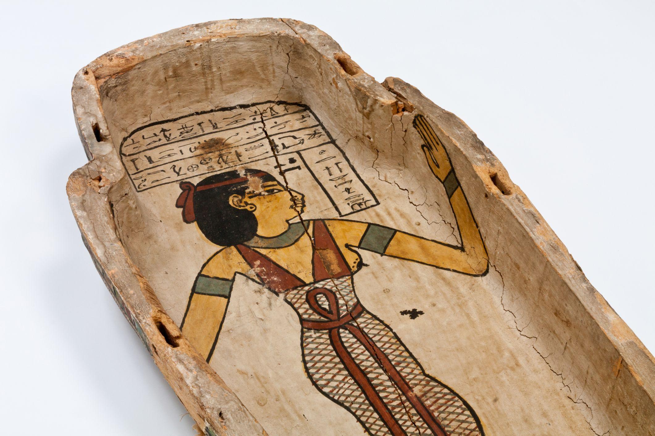 Coffin: paint on plastered linen on wood, probably sycamore