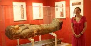 The display of the mummified remains of Ti-Ameny-Net is intended to be as respectful as possible, balancing conservation concerns, educational goals, and the value of human dignity. We aim to increase awareness and appreciation of the complex mummification process as well as Egyptian funerary art. In keeping with the Egyptian belief that the more one’s name was spoken aloud after death the better one’s afterlife existence would be, we encourage visitors to say her name. This preserved mummy represents a real human life, and we ask visitors to be respectful and refrain from taking photos.