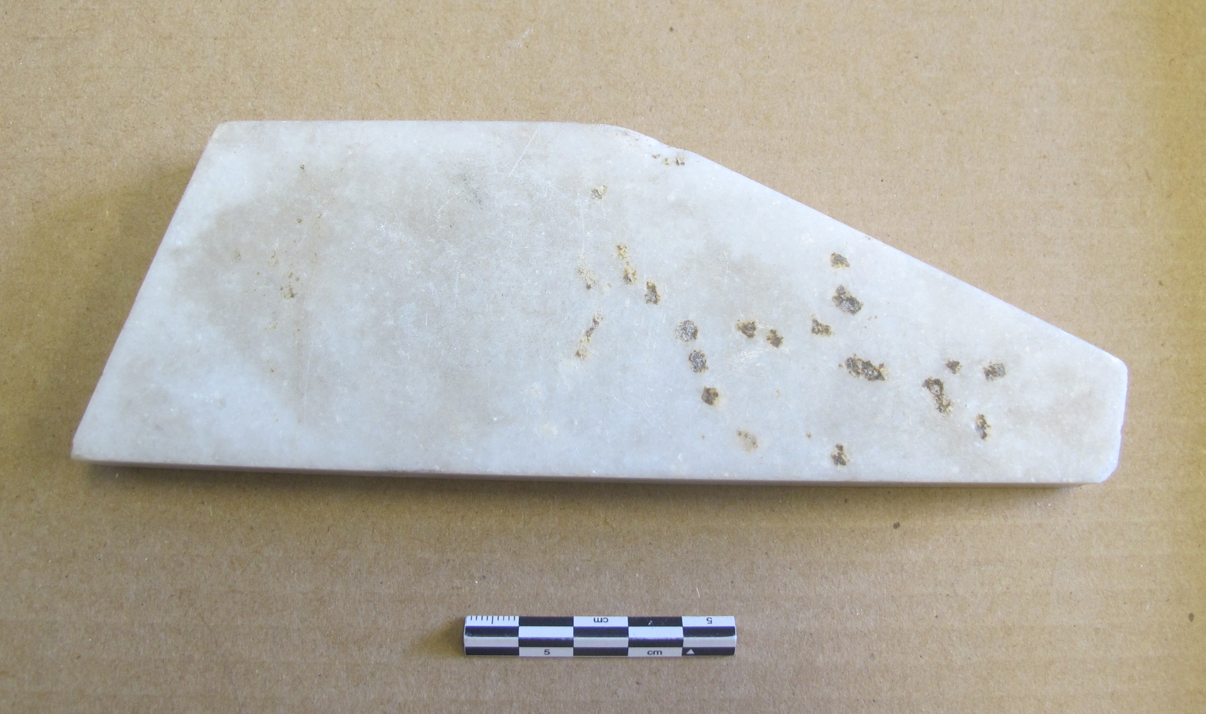 Condition: Good, though cut for re-use. Patches of mortar adhere to the back surface. The bottom left corner is chipped.
