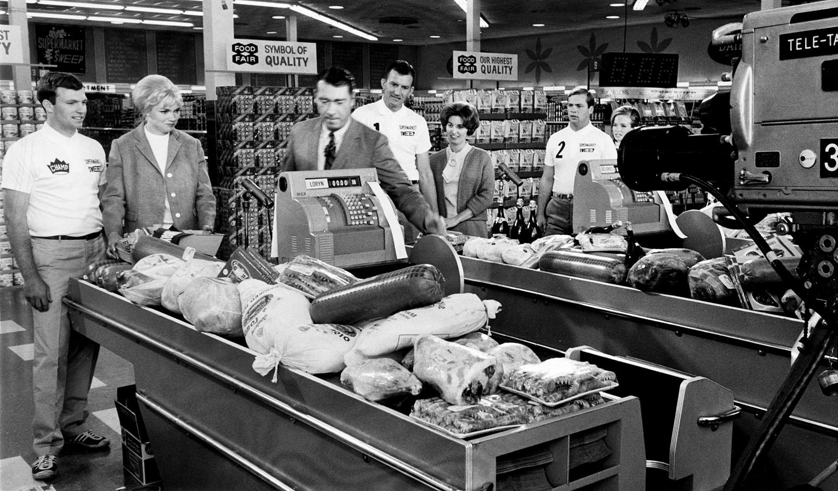 Azalea MallThe caption here: In October 1966, the television game show “Supermarket Sweep” visited the Azalea Mall Food Fair for a taping. Before an audience of 300, contestants attempted to guess the correct prices of grocery items in order to win minutes of shopping for free merchandise. Bill Malone, behind the register, was the host of the show.