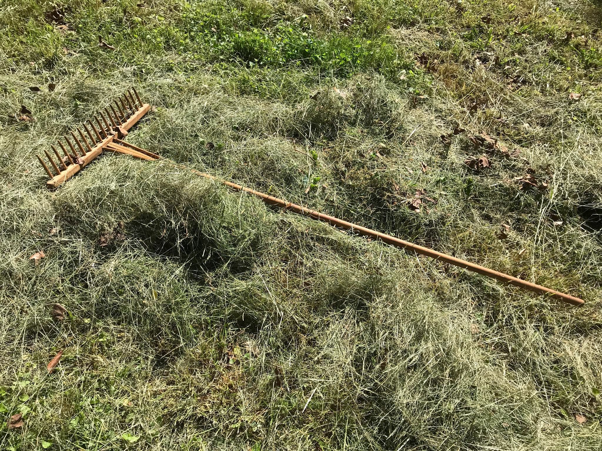 No matter the method, haymaking depends on a stretch of sunny weather, preferably one with enough breeze to dry the cut stalks after they are raked (my favorite part of the operation is hand-raking with a beautiful handmade Italian hay rake). Wet weather ruins hay, making it rot on the ground.