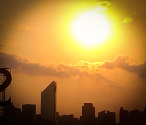 In the sweltering decades to come I suspect this word will “enjoy” renewed usage. I’m around for 2 more decades, and sometimes I’m thankful it won’t be longer. As for the word, use it wisely; “hot” and “scorching” convey degrees of heat-induced suffering, while “sweltering” just sounds wicked. “Sizzling” has many meanings, but I think of hot dogs on my Weber grill or sun-bathers frying at the beach.